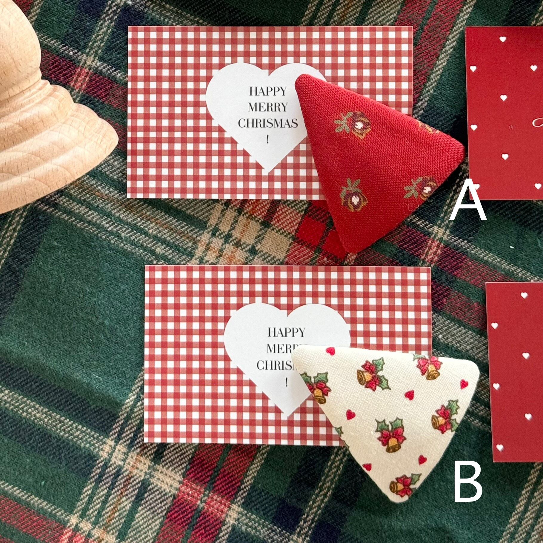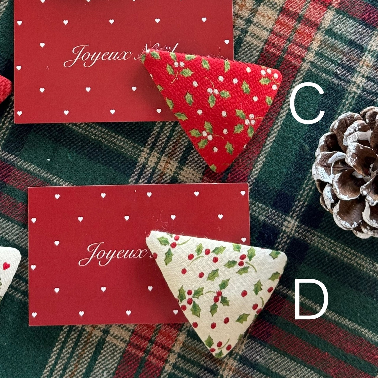 クリスマスカラーの三角パッチンピン 大きさ 6×5cm
